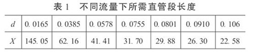 3.直管段長度和生物柴油流量計精度的初步預(yù)測在工程設(shè)計中,根據(jù)流體性質(zhì)、流量和雷諾數(shù)確定α和d值。這樣,按照式(5)就可以依不同的流量計精度要求,對直管段長度進行初步預(yù)測,或確定直管段長度后,對流量計的精度做初步預(yù)測。當δ= 0.2%時,不同流量下所需直管段長度見表1。